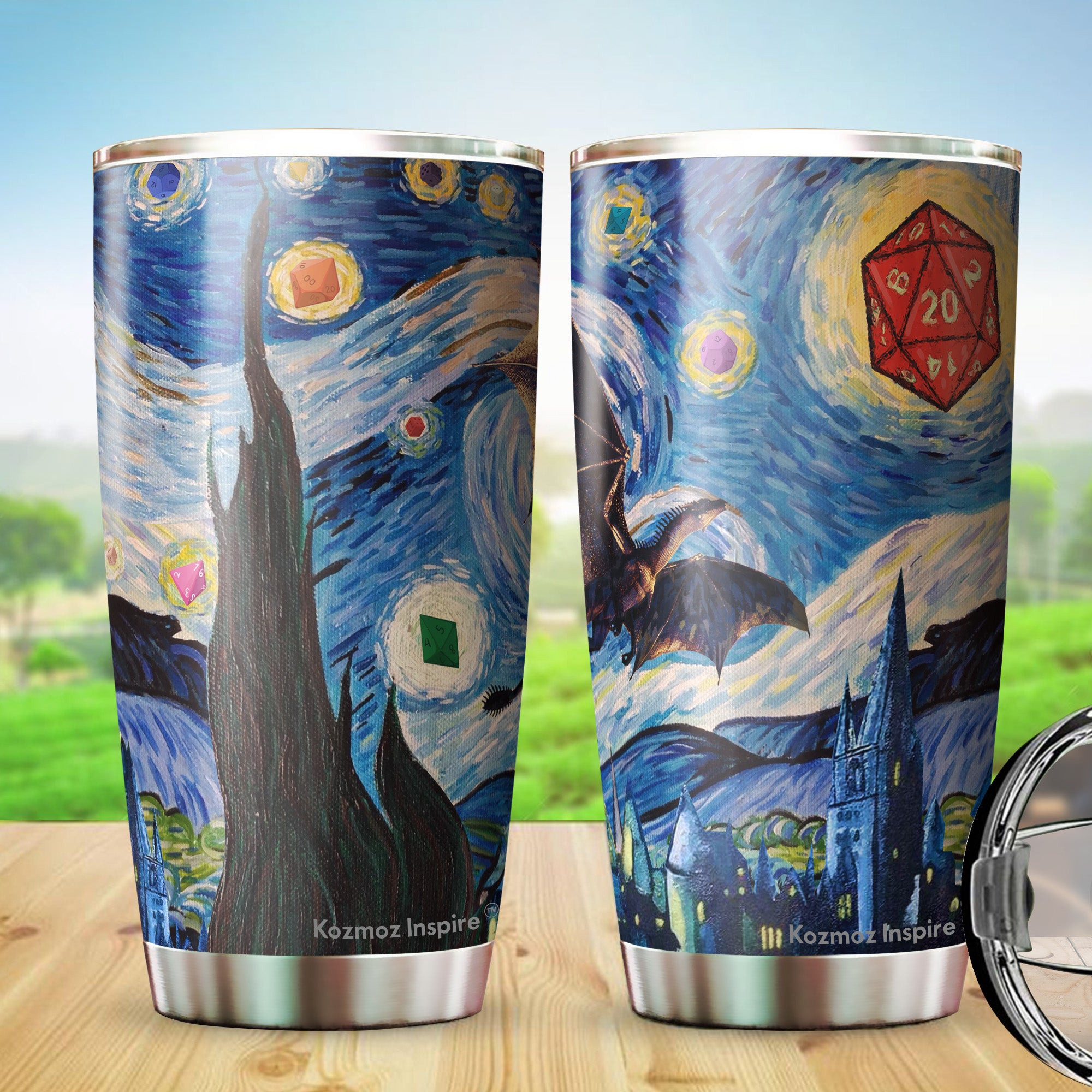 DND Starry Night Tumbler - Dungeon Master Tumbler - DM Crawler RPG Tumbler - Dragon Dice Game Board Game Tumbler - Tumbler 20oz