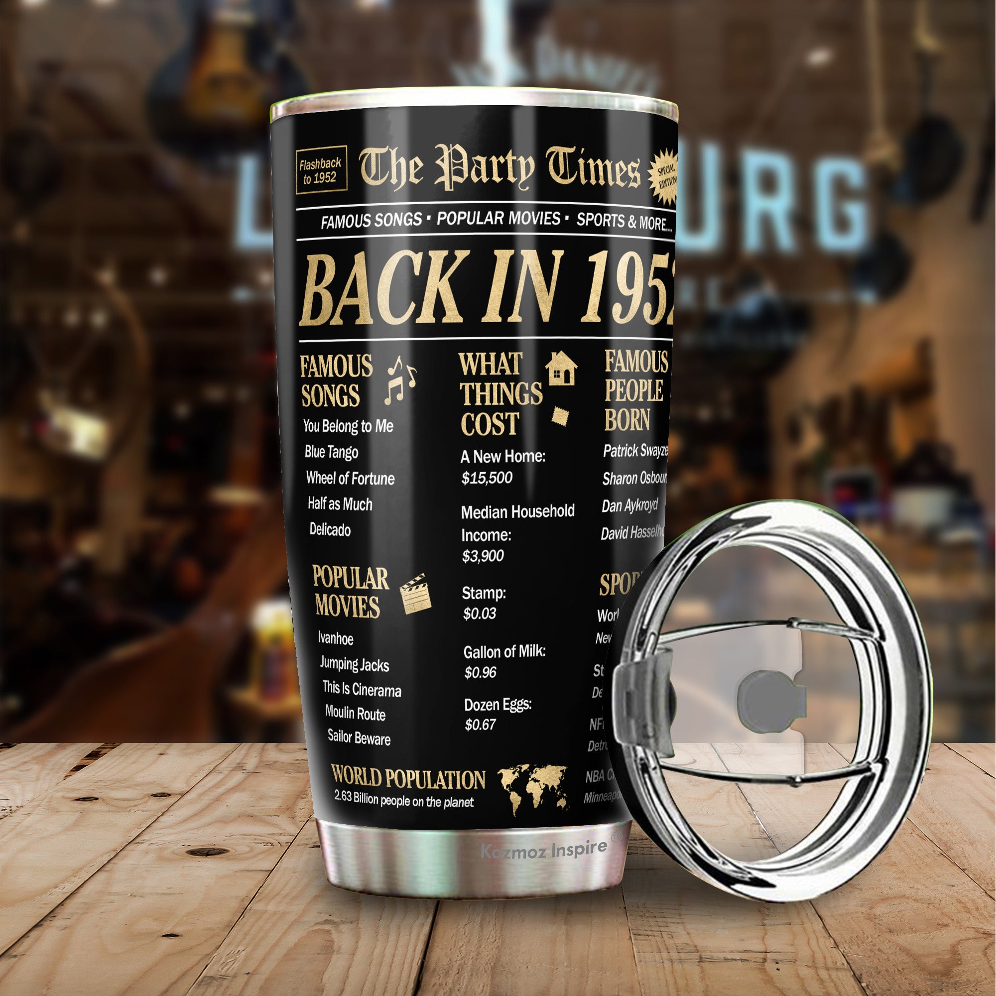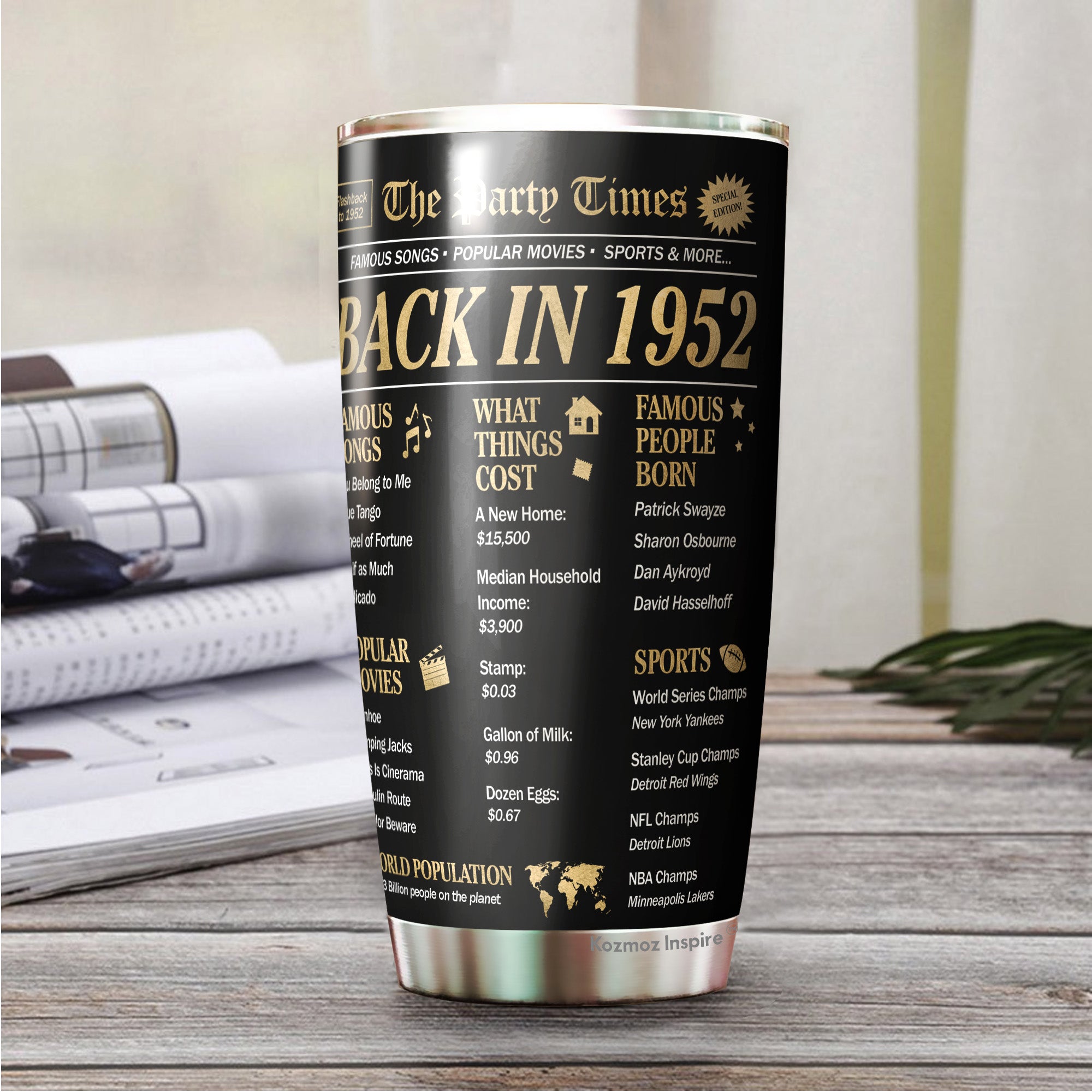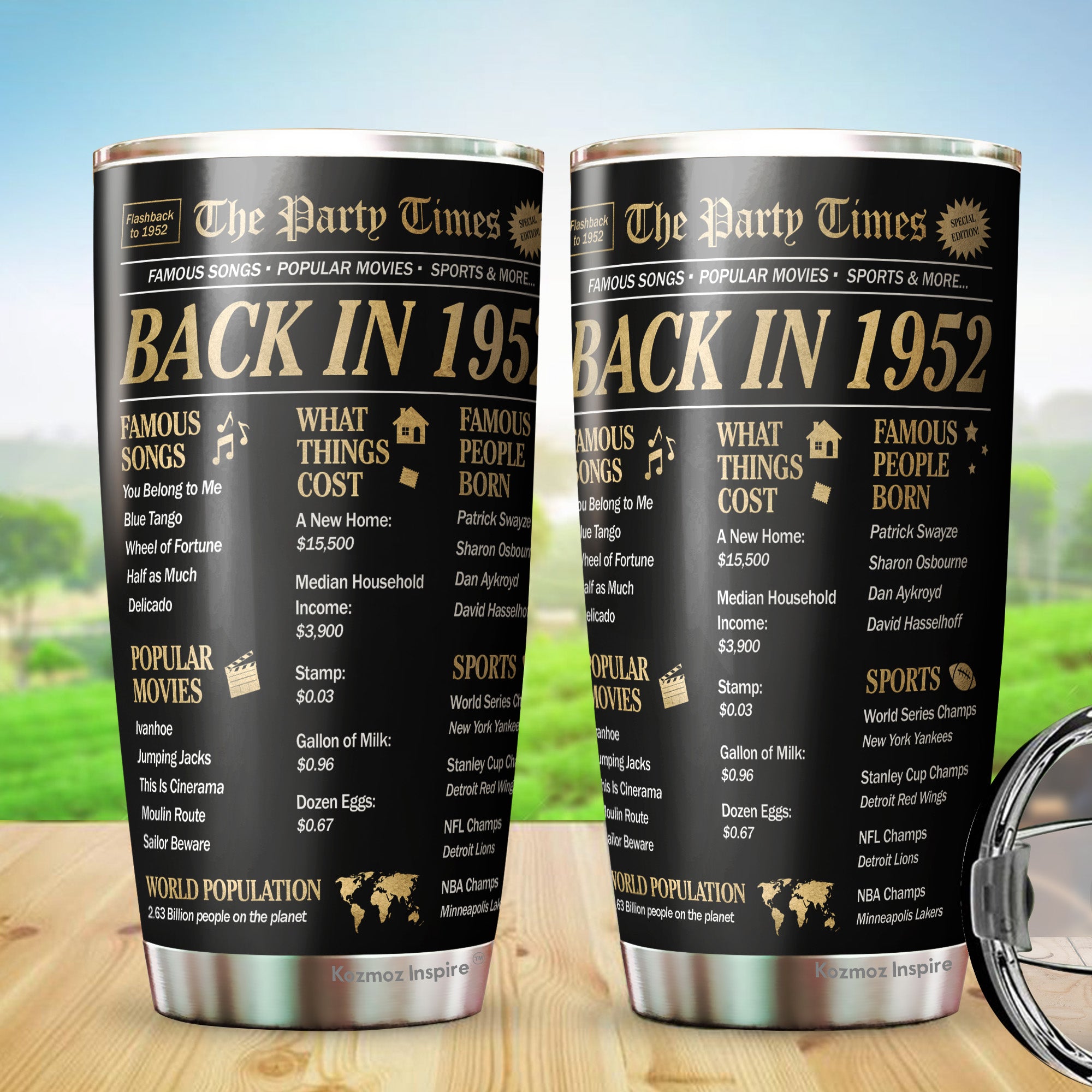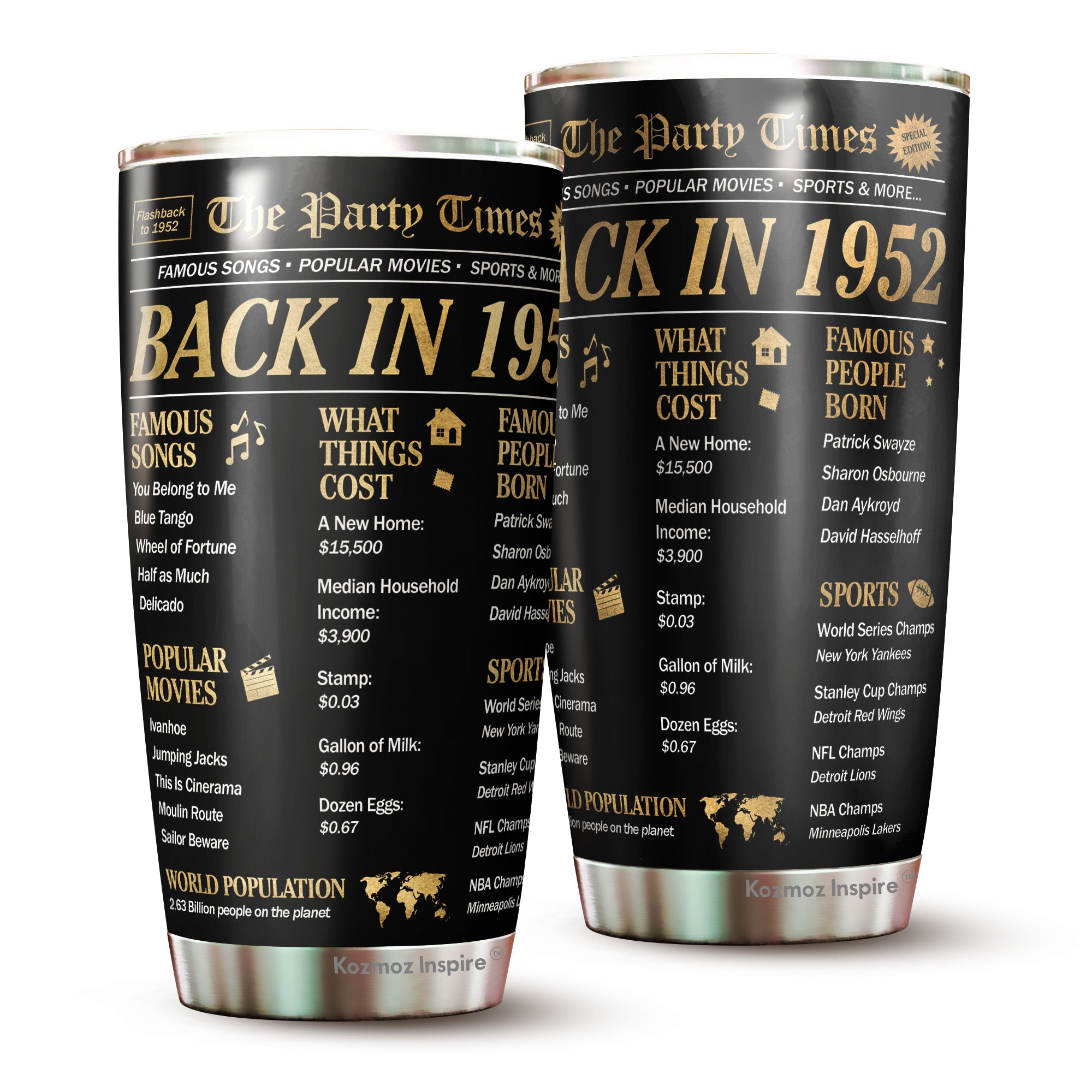Kozmoz Inspire The Party Times Flashback to 1952 Tumbler 20 Oz - Happy 70 Birthday Party, Turning 70 Birthday, 70th Bday For Her & Him, Seventy Birthday Tumbler 20 Oz - Milestone Birthday Gifts