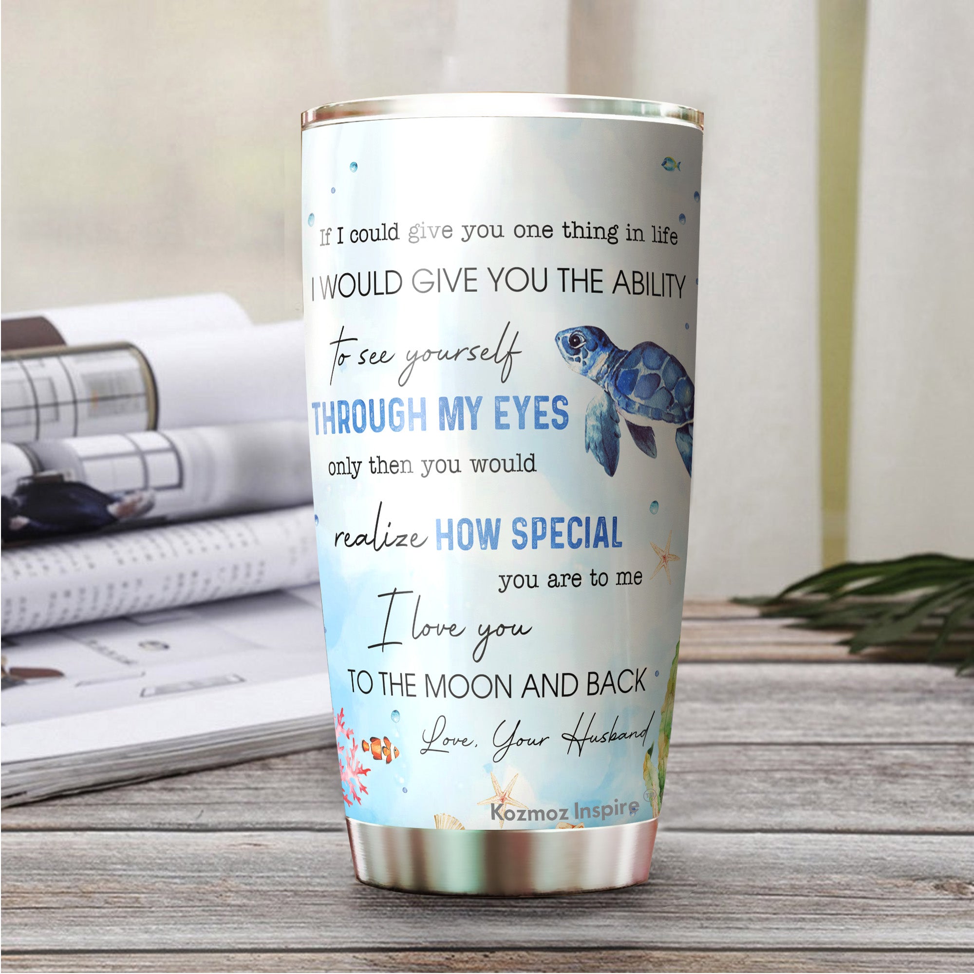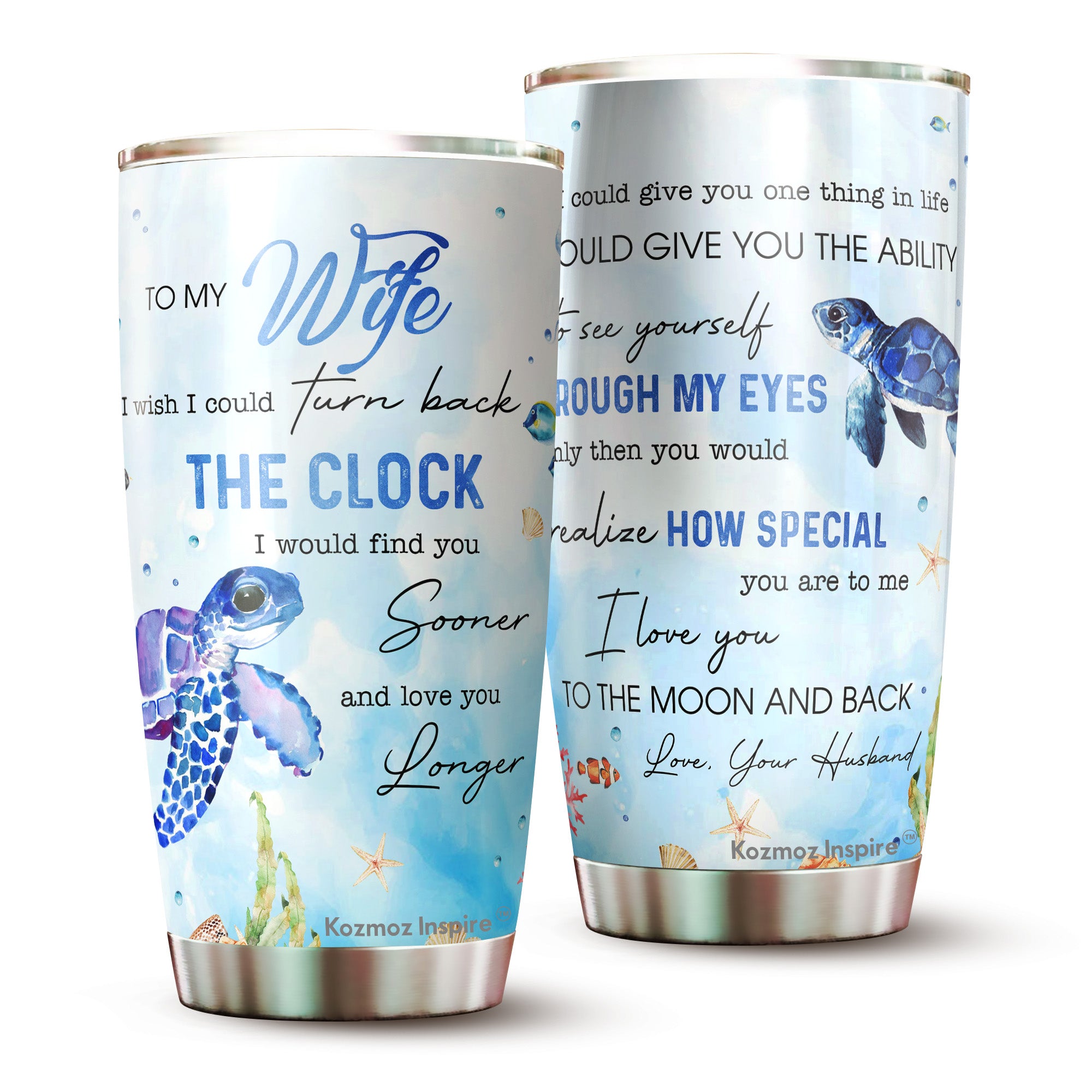Kozmoz Inspire To My Wife Turtles Couple Tumbler 20oz - Tumbler Gifts for Wife, Her, Women's Day, Wife's Birthday, Aniversary, Mothers Day 2022